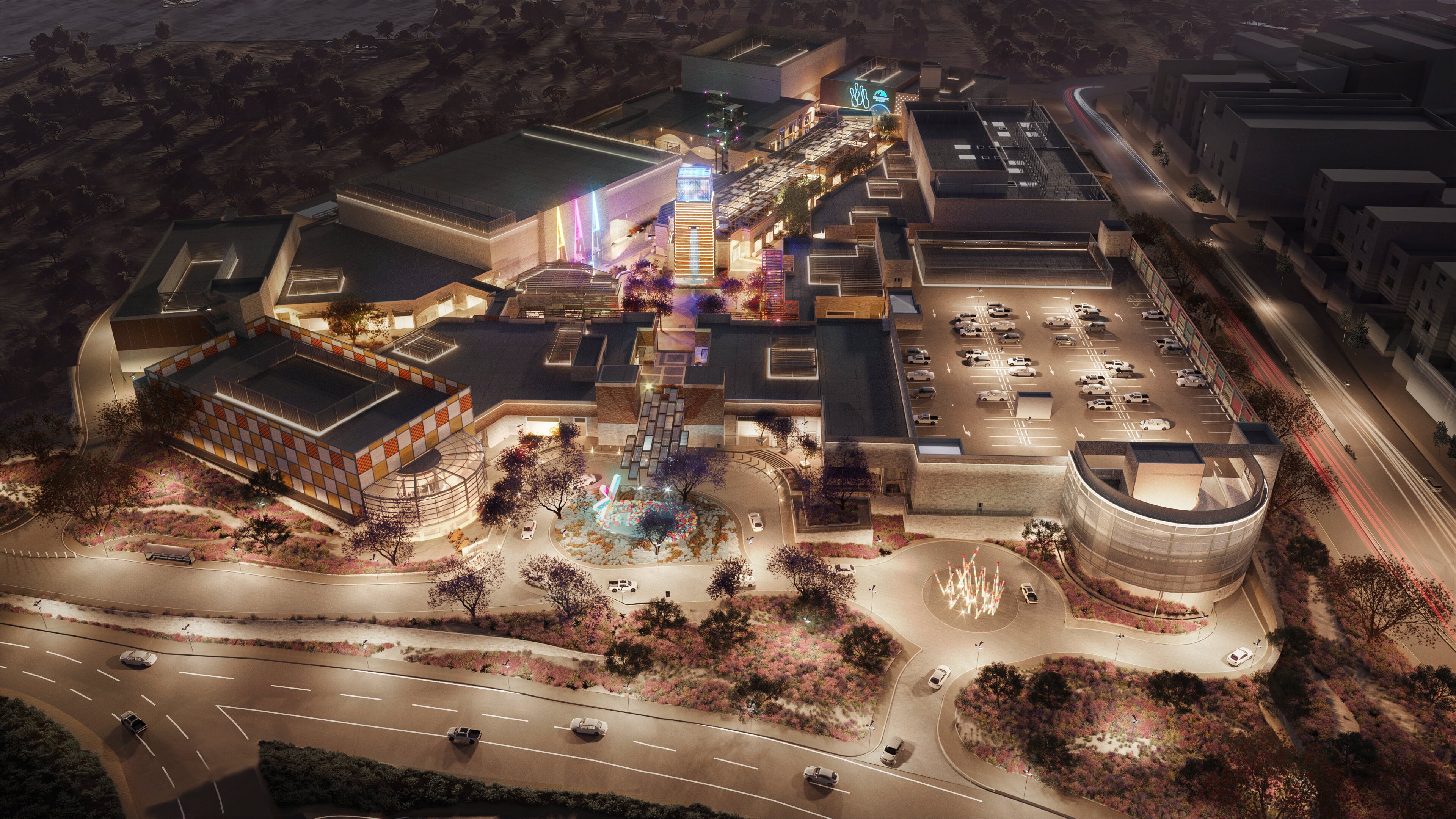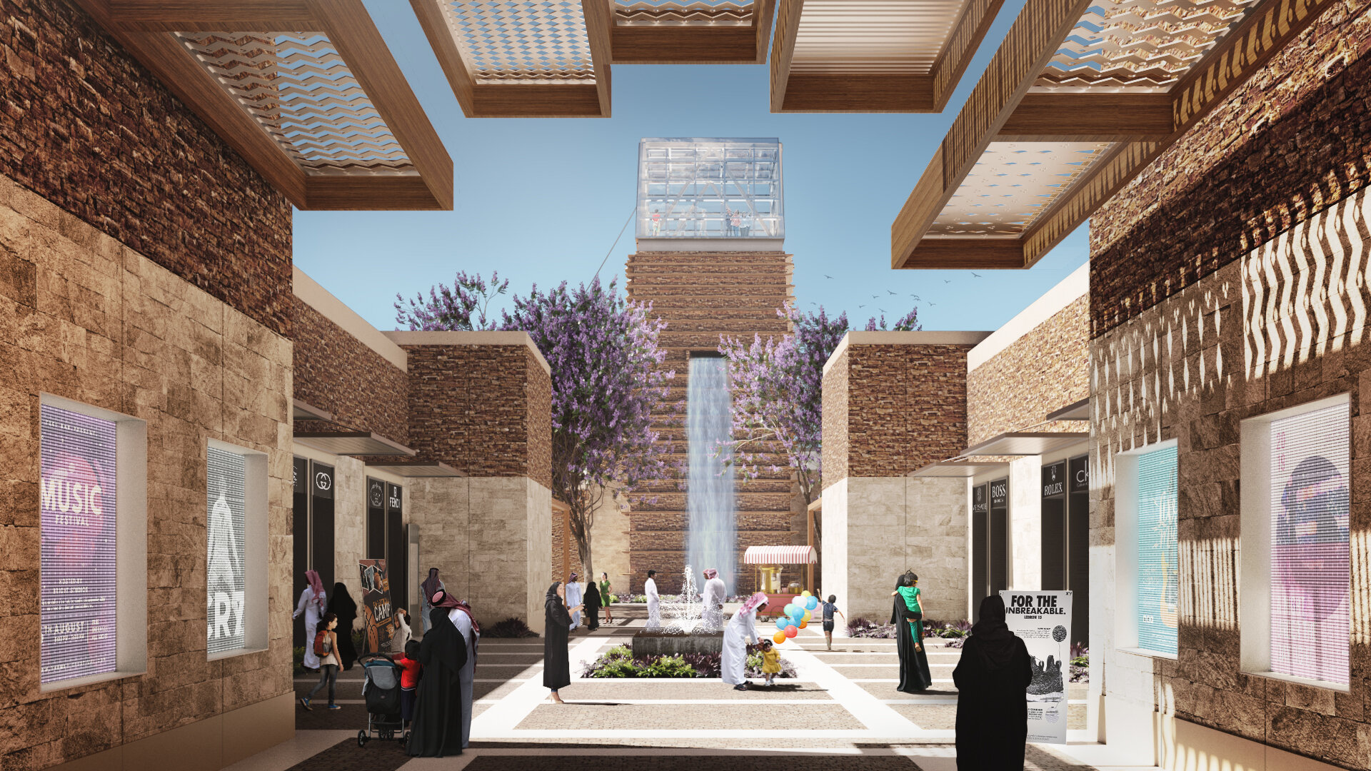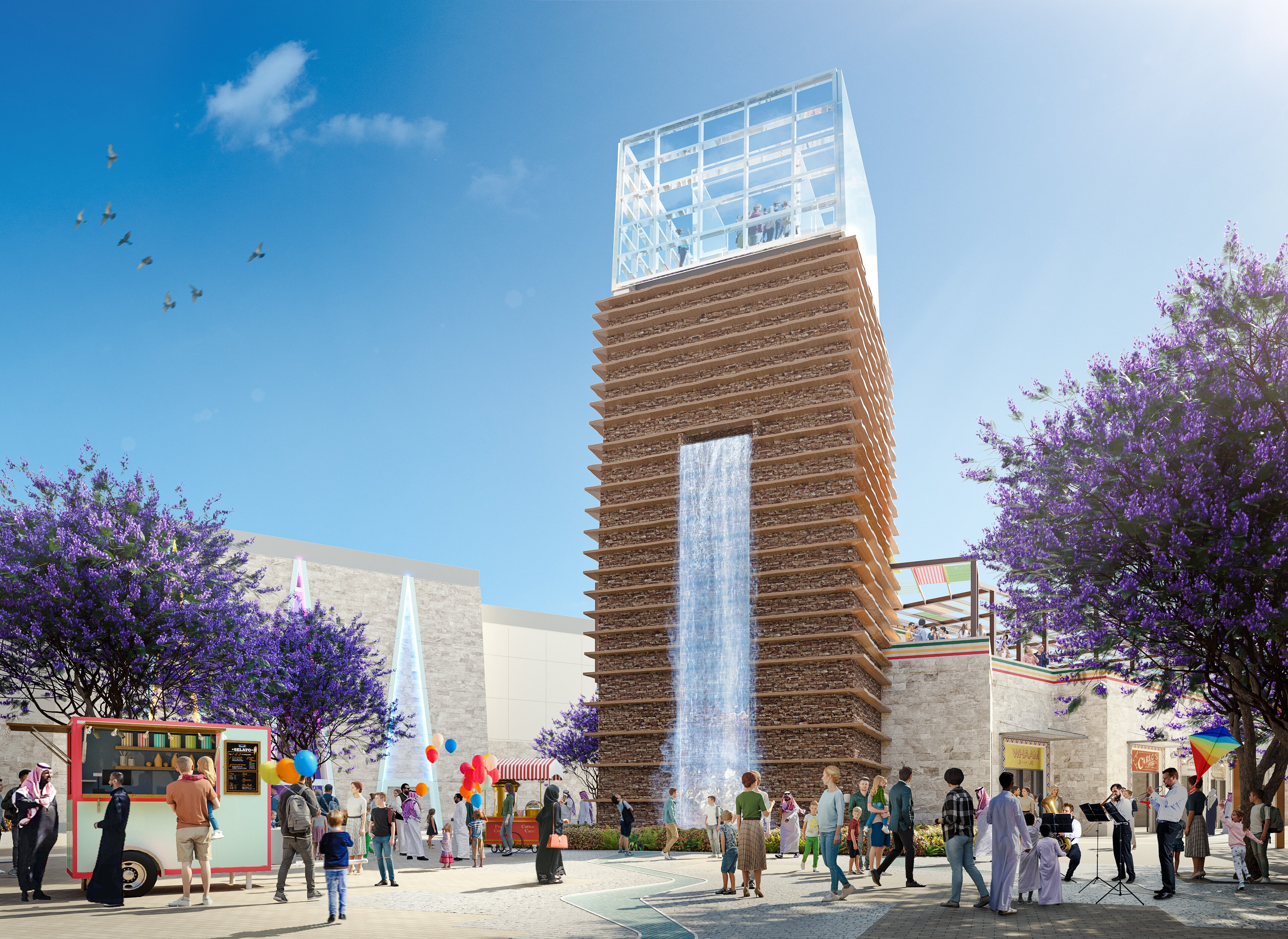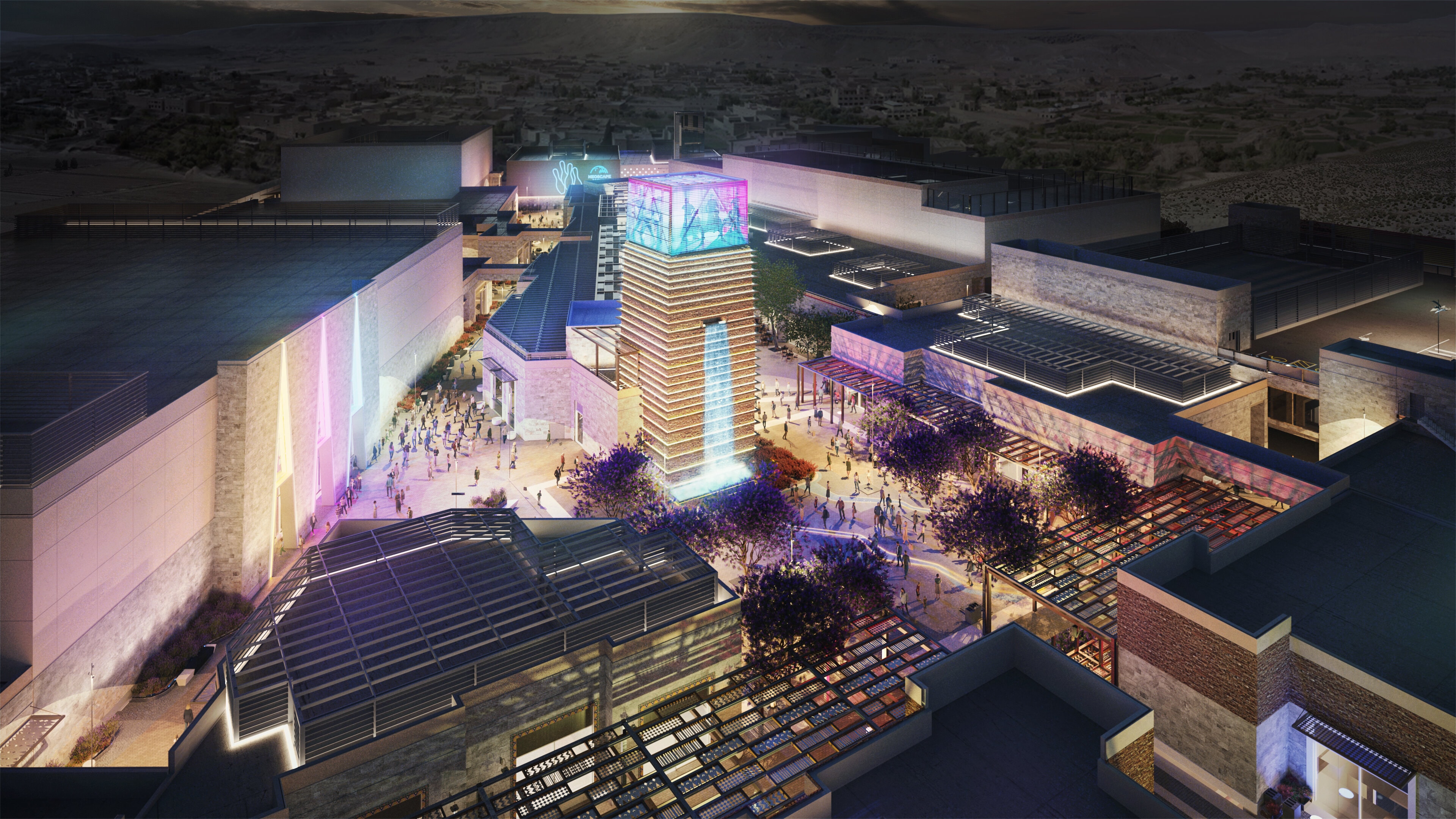 وقد استوحت الهندسة المعمارية من المباني الحجرية القديمة للمنطقة لإبراز هوية عسير. وستكون موطنًا لثمانية مناطق جذب فريدة تشمل مركزًا ترفيهيًا عائليًا يقدم تجارب متنوعة وجولات فريدة من نوعها ذات مستوى عالمي ومناطق الواقع الافتراضي. ويمكن للزوار تجربة مجموعة كاملة من الفعاليات الترفيهية الحية في المكان متعدد الأغراض، وسباق الكارتينج الإلكتروني الداخلي على مسار متعدد المستويات، ومفهوم البولينج المستقبلي المكون من 10 مسارات، وسينما ذات 10 شاشات من اي أم سي والعديد من التجارب المليئة بالمرح، كل ذلك تحت سقف واحد. بالإضافة إلى ذلك، ستقدم مجموعة واسعة من عروض اماكن التسوق والأطعمة والمشروبات بما يناسب الجميع.